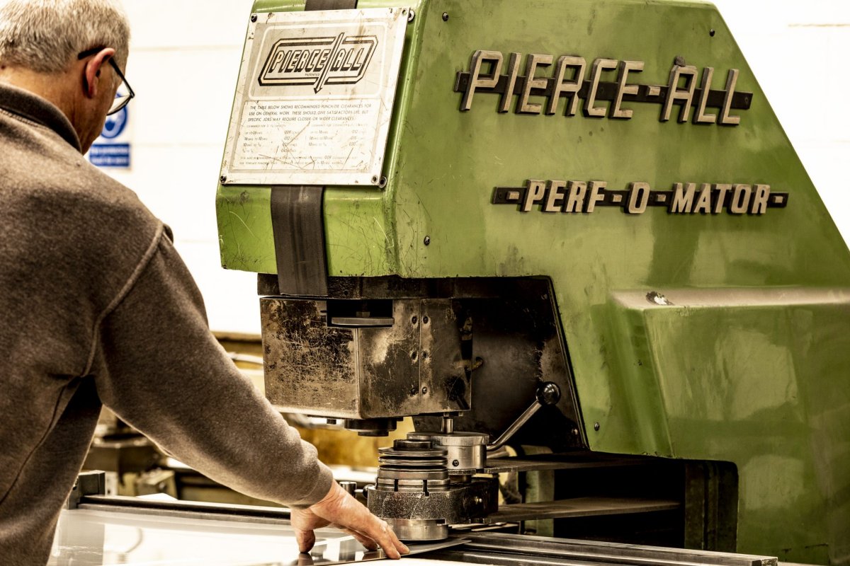 Not only modern plant and equipment, we keep our heritage close at heart too. Just as a watch maker will always keep his trusted Case Opener and Hand Lifting Levers, we retain the first hydraulic punching machine that David Ackerman purchased new back in 1976. In its day it was a substantial investment which came with its share of sleepless nights. Today over 45 years later the pictured Pierce-All is still invaluable when it comes to trying out special tools such as louvers, embosses or to prove uncommon swaging features.